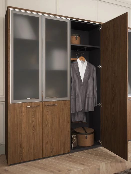 Двери: МДФ; матовое стекло в алюминиевой рамке