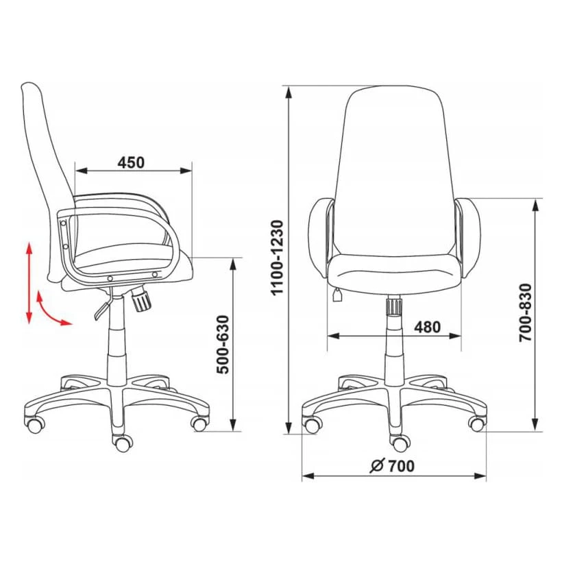 Подлокотники: пластиковые