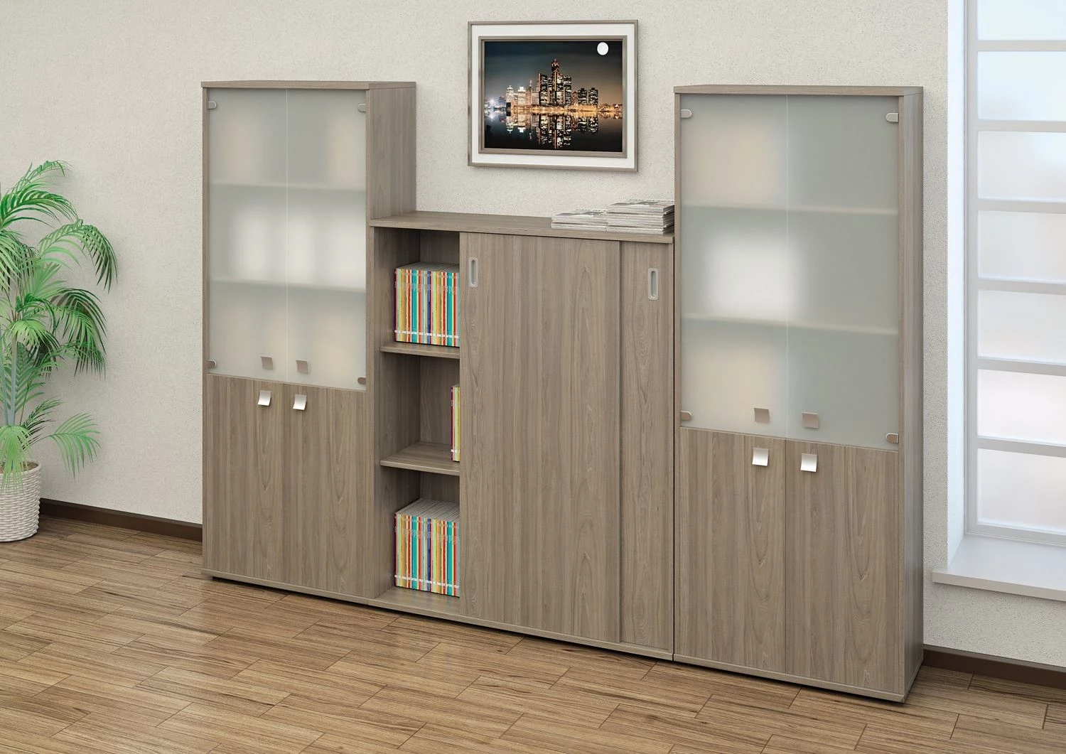 Двери: ЛДСП; матовое стекло